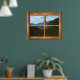 Rustic cottage wooden window frame looking out on a view of Lake Tarawera near the buried village of Te Wairoa near Rotorua New Zealand. Great poster to add a window outlook scenic view to your walls, breaking up a solid blank wall. The view can be changed by pressing the customisation button and uploading your own photograph in place of the New Zealand view by clicking the change image button.