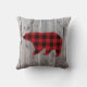 rustic woodland barn wood red buffalo plaid bear cushion