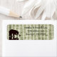 This rustic woodland address label design a silhouette bear fishing in a stream with a fish jumping to catch a dragonfly. They are set against a country or mountain strand of birch trees. Label is done in shades of brown, green and white. Some graphics by Origins Digital Curio at www.etsy.com/shop/OriginsDigitalCurio