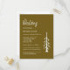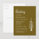 Rustic pine tree wedding invitation postcard, with a simple typography design on a brown background. With white customizable lettering, you add your own information. Great for planning your special day with a casual style.