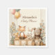 Celebrate the mum-to-be with this rustic woodland baby shower design featuring a sweet fox, bunny, and teddy bear sitting on wooden toy blocks, surrounded by wildflowers, butterflies, and pastel balloons. A charming countryside theme that feels warm, cosy, and perfect for a forest-inspired celebration.