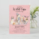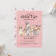 Cute woodland animals wild one girls baby shower Invitation set on a rustic pink burlap background with a coordinating back.