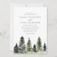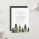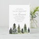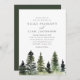 Invite friends and family to your wedding ceremony with this rustic woodland invitation, featuring a watercolor pine trees and a hunter green background.