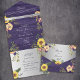 Celebrate your wedding with this charming rustic all-in-one invitation featuring a country-inspired purple wood background, sunflowers, and bohemian floral accents. The built-in RSVP section makes planning easy and keeps everything beautifully coordinated. Perfect for fall weddings, country celebrations, or boho floral themes, this design captures the warmth of a countryside romance with a touch of bold colour and personality.