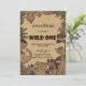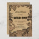 A cute and fun filled rustic jungle scene first Birthday invitation in monochrome brown kraft paper depicting a wild tropical jungle line art complete with a collection of cute wild animals. This theme features wild animals and birds like elephant, cheetah, giraffe, zebra, monkey, toucan and ostrich framing the card. The card features a unique custom 'Wild One' textured typography. The backside colour and text can be customised as per your requirement.