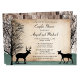 Rustic woodsy deer couples shower invitations, exclusively designed by Artistically Invited, with silhouettes of a buck deer with antlers, a doe, and winter trees over a wood background and a faded hunter green design at the bottom. Your personalized wedding shower details are custom printed over a tattered rustic paper illustration. These invitations are perfect for your woodsy or deer themed weddings and shower celebrations.