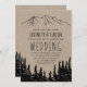 This rustic woodsy mountain wedding invitation card is perfect for a woodland wedding. The nature inspired design features the silhouette of a pine tree forest and mountains on faux kraft paper.