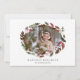 Elegant botanical holiday cards feature your favorite horizontal or landscape oriented photo encircled by an oval wreath of lush rustic foliage and flowers. Personalize with your custom greeting and names beneath; shown with "Happiest Holidays."