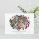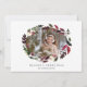 Elegant botanical holiday cards feature your favorite horizontal or landscape oriented photo encircled by an oval wreath of lush rustic foliage and flowers. Personalize with your custom greeting and names beneath; shown with "Season's Greetings."