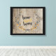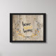 Weathered wood background, a wreath of country flowers and "home sweet home" text in modern two tone font gives this charming stretched canvas print a modern yet rustic look.