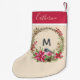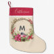 Rustic Wreath Poinsetta Bird Berries Monogram Small Christmas Stocking
