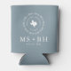 Rustic Wreath Texas Wedding Monogram | Dusty Blue Can Cooler