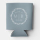 Rustic Wreath Wedding Monogram | Dusty Blue Can Cooler