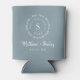 Rustic Wreath Wedding Monogram | Dusty Blue Can Cooler