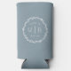 Rustic Wreath Wedding Monogram | Dusty Blue Seltzer Can Cooler
