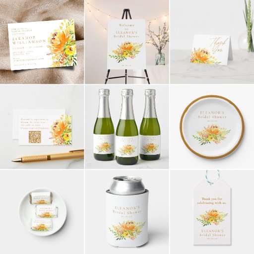 Yellow and Orange Floral Watercolor Bridal ShowerDesigned by Opal Ellery