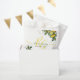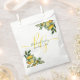 This design features an elegant yet simple arrangement of the bride's and groom's personalised initials framed by vintage illustrations of citrus and lemons. The text is placed on top of the bride's and groom's first name initials which are displayed in yellow colour typography. This yellow, white and green design is simple yet elegant in every way. The combination of colours creates a sophisticated, trendy and chic style. Elegant wedding favour bag design with modern elements. Matching wedding invitations and stationery items are also available.