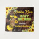 African American Baby girl with adorable afro puff ponytails wearing yellow ruffle diaper cover and a brown baby bodysuit; holding a bright yellow sunflower, on a rustic dark brown wood panel background with sunflower corners. Great for Sunflower or Garden themed baby shower. ©2023 Miss Sassy Party Designs