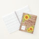 An elegant rustic yellow sunflower notebook comprising of a wood wooden background decorated with a pretty floral watercolor yellow sunflower, string lights and a bee . Personalise by adding your business logo, business name and other text such as what notepad is for . A lovely stylish notebook for your office staff and employees.