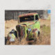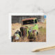 Rusting car in front of abandoned farm postcard