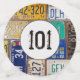 Old rusty license plate collection for 101st birthday party.
