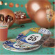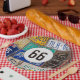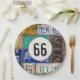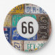 Old rusty license plate collection for 66th birthday party.