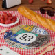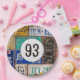 Old rusty license plate collection for 93rd birthday party.