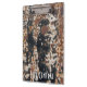 Clipboard front and back designed with a scraped and scuffed rusty metal black background. Fill in the template fields for the front and back with your information, remove the text and/or click Customise it! to select a font style, size and colour you prefer.