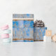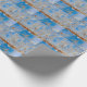 Rusty metal texture, blue scratchy backdrop. wrapping paper
