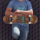 A rusty looking skateboard for the most uncommon and careless skaters. This design features a rusty metal detail, a customizable text, and red-brown colors.