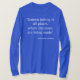 I love this shirt. I had written to the artist asking her if this picture was available on a shirt, and she wrote me back telling me where I could find the shirt. These shirts can be custom made to have a different saying. I loved this saying and went with it. The artist wrote me back later to tell me that she had seen my order go through. How's that for service? Pretty special. It's just as displayed. Perfect!