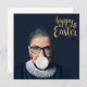 Ruth Bader Ginsburg blowing a white bubble gum. "Happy Easter" text in gold.