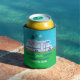 Add a personalised touch to your travels with this unique foam can cooler for motor home enthusiasts. The design shows a light blue RV with a painted, hand-drawn look and heart-shaped balloons. The background looks like a painted blue sky and green grass with the camper driving down a dirt road. Instead of "home sweet home," the text says "roam sweet roam."