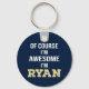 Of Course I'm Awesome I'm Ryan in white and golden yellow uppercase sans serif and distressed font lettering. Topped with golden yellow rays.