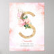 S Letter Monogram Gold Leaves Pink Magnolia Floral Poster