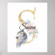 Beautiful personalized gold floral monogram letter with watercolor horse and name.