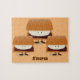A jigsaw puzzle with a design that shows three, smiling s’mores and the word “S’mores” below them. The word can be customised as you like.