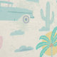 Smaller Scale - Vintage pastel print with palm trees, pink cars, and cactus on an off-white background. Ideal for beach and retro products.
