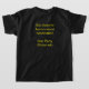 The t-shirt feels and looks great quality, a good thick cotton. It will be a little big for my son, but that means he will be able to wear it and not out grow it too soon. The print was as described on the order when personalised. True size, shape and colour T-shirt- thanks.