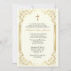 Elegant religious artwork featuring a white dove representing the Holy Spirit, surrounded by golden rays of divine light and framed in an ornate gold border. Beautiful red and pink roses with green foliage adorn the bottom of the design. The deep teal background enhances the radiance of the imagery, creating a perfect invitation for the sacred Sacrament of Confirmation. This timeless design beautifully captures the spiritual significance of this important religious milestone.