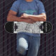 A unique map of the beautiful city of Sacramento, California. This skateboard features a street map of the city inside a black border on the top and bottom.