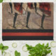 16” x 24” kitchen towel with an image of three French Cancan dancers in red dresses and wide-brim feathered hats on a withering, crumbling wall. Red satin stripe borders. See matching cloth napkin, paper cocktail napkin, cloth placemat, paper placemat and coasters. See the entire Cancan Kitchen Towel collection in the FOOD/BEV | Linens section.