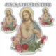 This beautiful contour sticker features a traditional Catholic image of Sacred Heart of Jesus with a rose bouquet underneath. Pink and red roses are below with the text, "Jesus, I trust in Thee."
