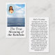 Front design features the beautiful image of the Sacred Heart of Jesus in an oval border over-looking a rainbow over the waters. The words, "The True Meaning of the Rainbow" are displayed below image.