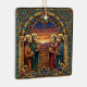 Celebrate faith and family with this stunning square ornament featuring a classic Sacred Hearts stained glass design. This deeply spiritual image depicts the Sacred Heart of Jesus flanked by the Immaculate Heart of Mary and the Chaste Heart of St. Joseph. The vibrant colors and rich detail, inspired by traditional church windows, make this a truly unique and meaningful piece.