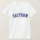 Check out this Sactown t-shirt! Are you from Sacramento, California? Do you have a friend or family member who loves Sacramento, California? If so, this "Banner" t-shirt is exactly the gift that you're looking for! The design features "Sactown" in arched navy lettering in the classic College font.