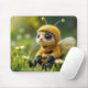 A cute, wide-eyed creature resembling a mix between a bumblebee and a plush toy sits among daisies with tears in its eyes