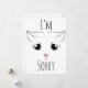 A drawing of a cat crying, that is sandwiched between the text, "I''m Sorry."