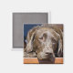 Looking cute on the fridge or file cabinetl! It's a close up photograph on the face of a sad chocolate Labrador Retriever on a magnet. .Photo © Patricia AZ Phillips.