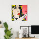 A pretty young blond blows a sad kiss goodbye. Print of an original design pop art painting on canvas by www.jamieleeart.com